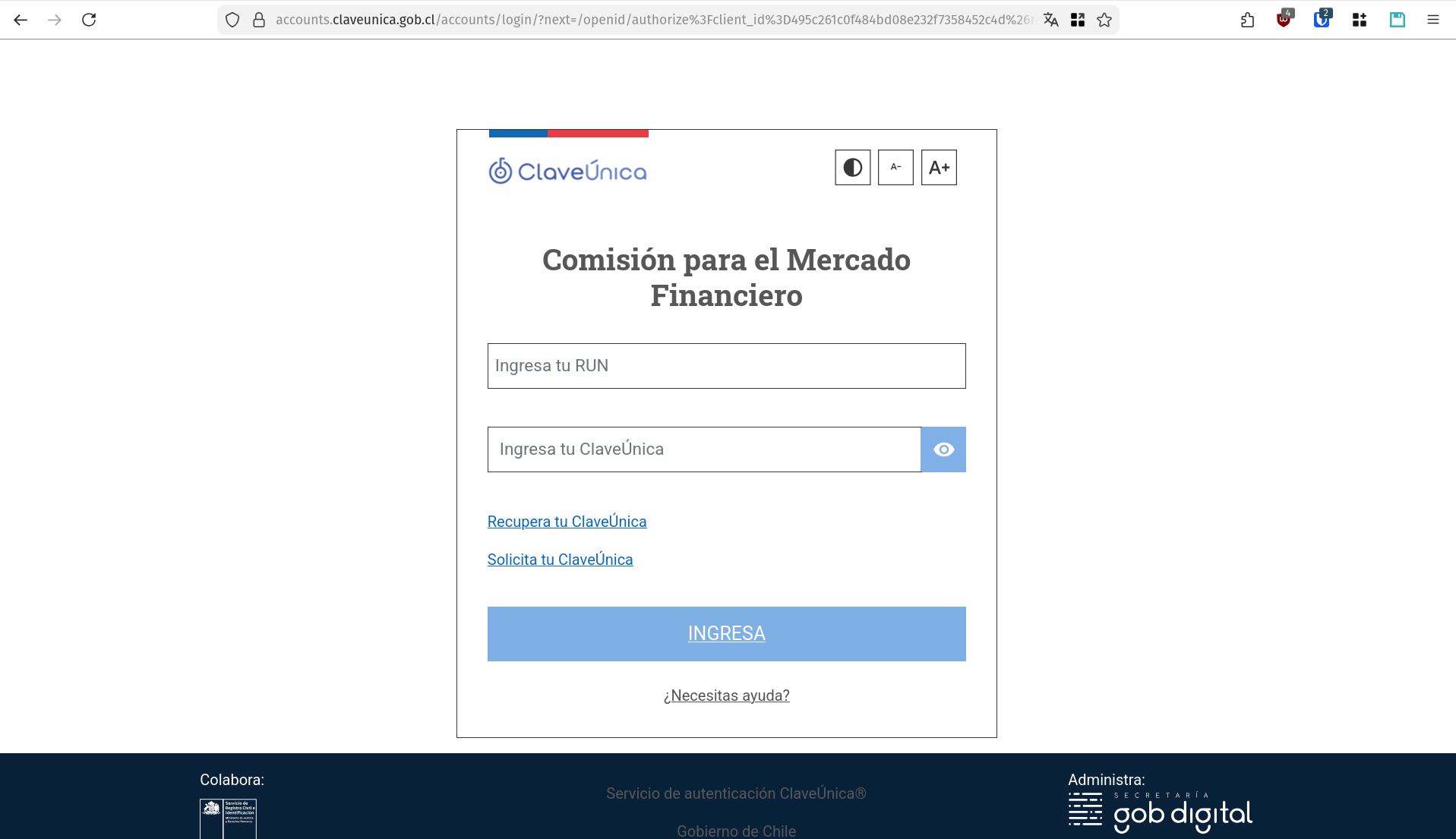 - Haz click en iniciar sesión con clave única e ingresa tus credenciales.